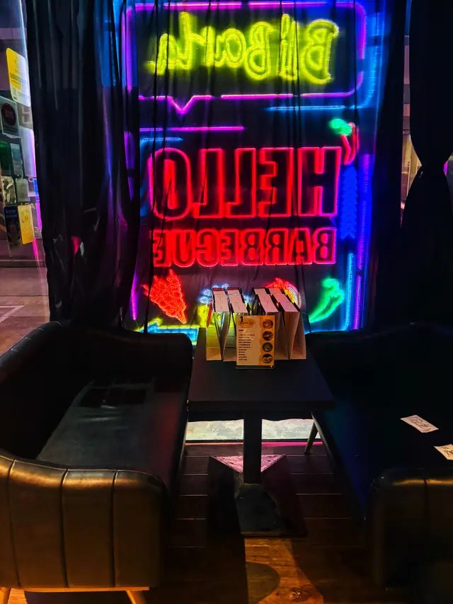 餐廳霓虹燈的裝潢更添晚上的氣氛情調~