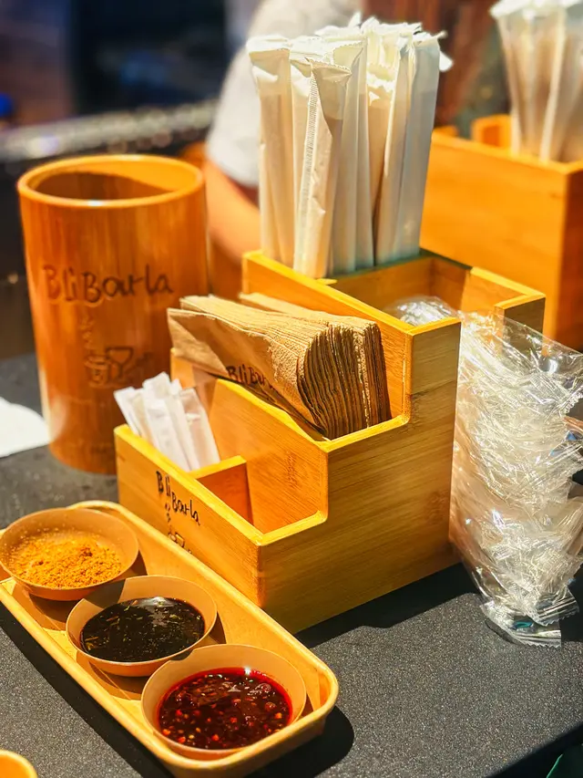 桌子旁邊就放有紙巾和餐具一應俱全。