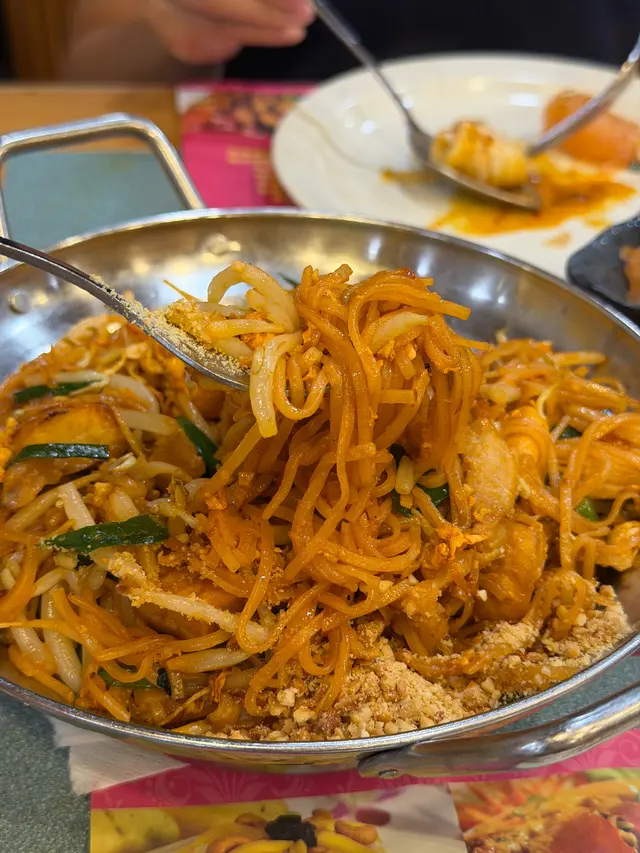 🍝泰式金邊粉,以鍋仔上碟,份量真的很多,性價比高,而且材料豐富,有蝦,豆乾,蛋絲,牙菜,花生等等,味道酸甜辣,好醒胃
