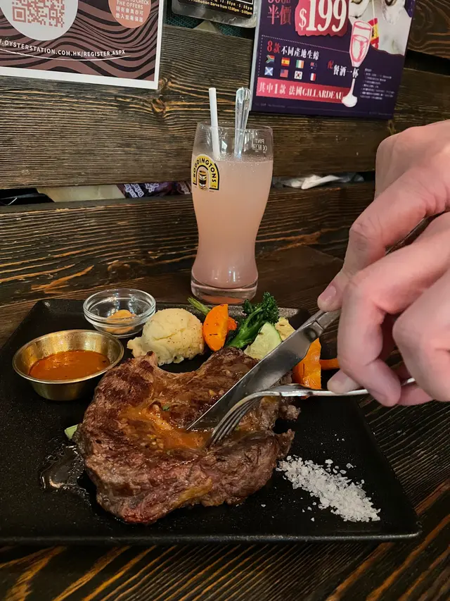朋友鍾意食牛扒,我就揀咗肉眼,五成熟,