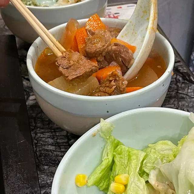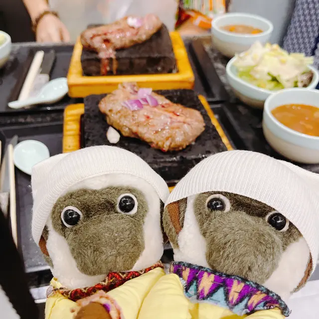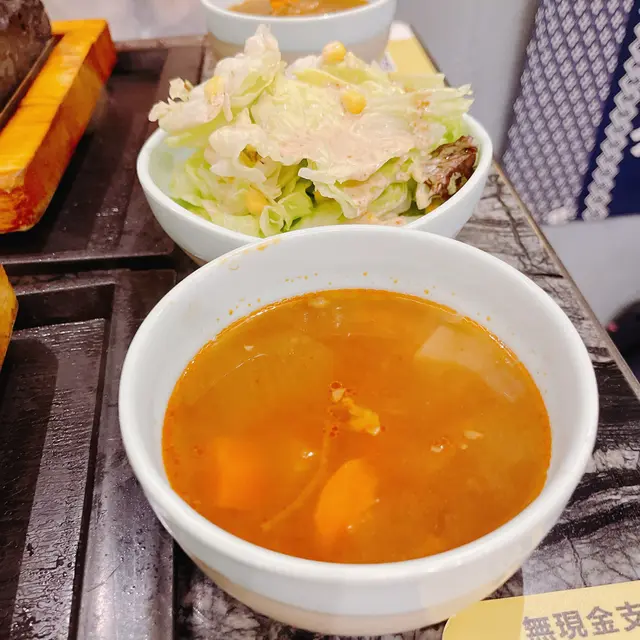 想食熱辣辣鐵板燒牛扒閑閑哋都要$200以上,喺牛極$100以下搞掂!呢度特色係用一塊燒紅咗嘅石裝住牛扒,上菜時塊石仲滾熱辣燒緊塊牛扒,你可根據自己食牛嘅喜好,生少少食又得,煮熟D食又得。不過我覺得七成熟就最好食,趁佢熱嘅時候加啲蒜蓉一齊煮更加惹味!唔想煮得太熟硬巴巴就要早啲將塊牛移走塊石!自助吧有沙律菜牛肉湯白飯醬油蒜蓉,檸檬水任你享用同添飲!