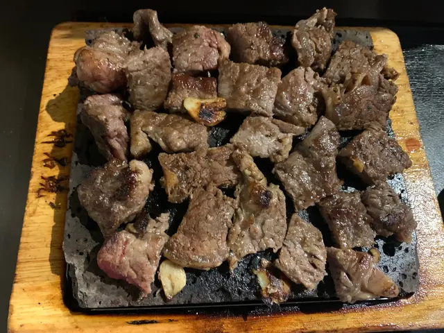 慢慢將牛扒切成細塊,都舖滿成塊石板呢。