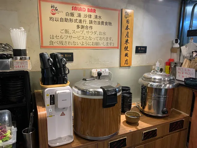 店內環境四四正正,有湯飲有沙律食,仲有白飯任裝、紫菜任加。