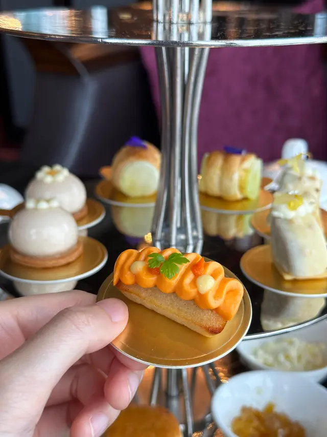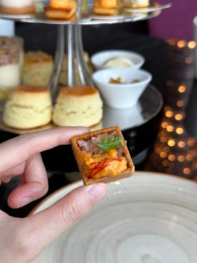 佢鹹點同甜點比例唔錯,鹹點方面全部食物都加入左海膽😋 分別有海膽鰻魚牛油果迷你泡芙、海膽撻配煙燻牛肉及烏龍果凍、海蝦瑞士卷配海膽蒜泥蛋黃醬、海膽海鮮泡芙卷,全部都好好食,海膽非常鮮甜可口😍 每樣食材都完美配搭海膽!