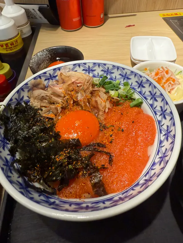 除左肉既,一人前餐會跟湯(可選麵豉湯或者粟米湯),穀物類主食可以揀烏冬/紫菜飯~上菜後覺得個烏冬超有驚喜😍😍係月見明太子烏冬!!!仲要係海量既明太子🤩🤩🤩打卡視覺效果同性價比加晒分🤤🤤同男朋友叫左兩個一人前餐