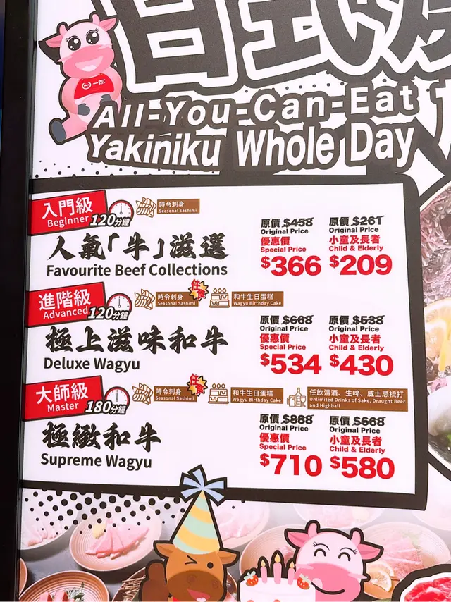 新餐牌三款放題套餐🐮人氣「牛」滋選🐮極尚滋味和牛🐮極緻和牛,今次我去食嘅套餐就係人氣「牛」滋選🐮,每位$366再加一,依個套餐仲有刺身