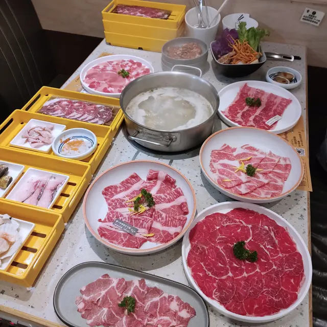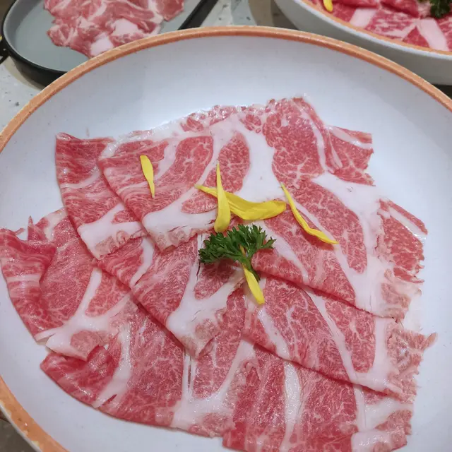 肉類同海鮮都係經QR code落單,野食都上得好快同冇漏單情況。因為我地揀嘅係最貴嘅餐,當然專攻啲靚肉,好似極上安格斯牛小排呀,澳洲M6和牛牛腹肉呀,南非和牛三花腱呀,伊比利亞黑毛豬呀......全部都唔差,解凍得夠又唔會有血水,亦唔會切到碎濕濕咁。