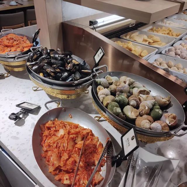 醬料,餐前小食,冷盤,丸類,蔬菜同飲品就可以喺自助區自己搞掂。
