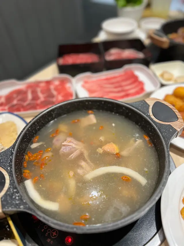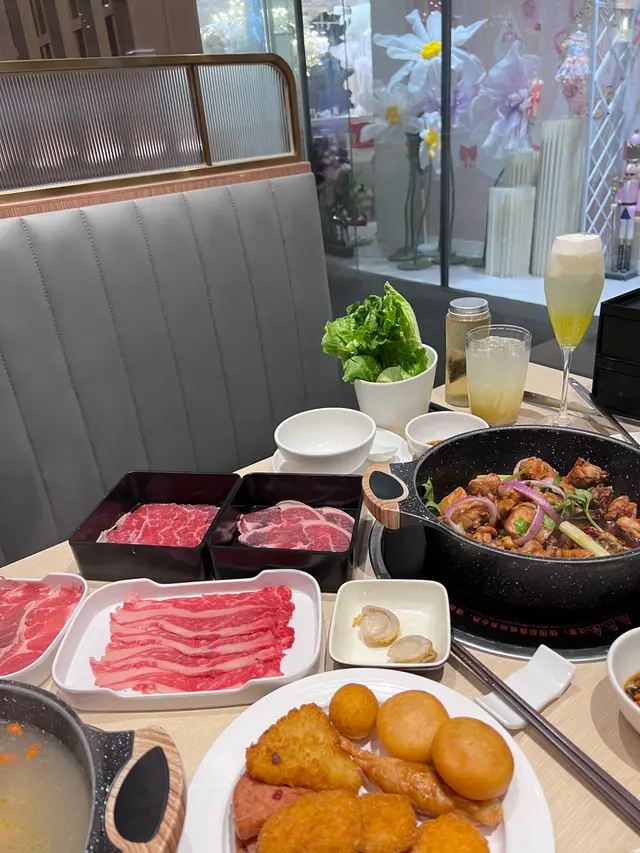 食完雞煲就輪到打邊爐❤️ 我揀咗個椰子雞湯底🥥個湯底煮得夠晒濃郁🤤🤤飲落去好暖胃🥹肉類方面,牛小排真係必食!切得薄薄哋,涮幾下就熟,入口即溶😚😚牛肉嘅鮮甜味喺口入面爆開,真係爽到飛起🥹牛板腱雖然厚啲,但肉質都一樣咁嫩滑,咬落去好有口感👍👍豚肉片同羊肉片都處理得好好,冇咩羶味,食落去好舒服💕