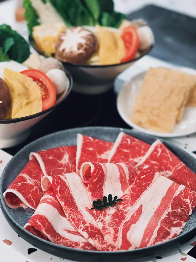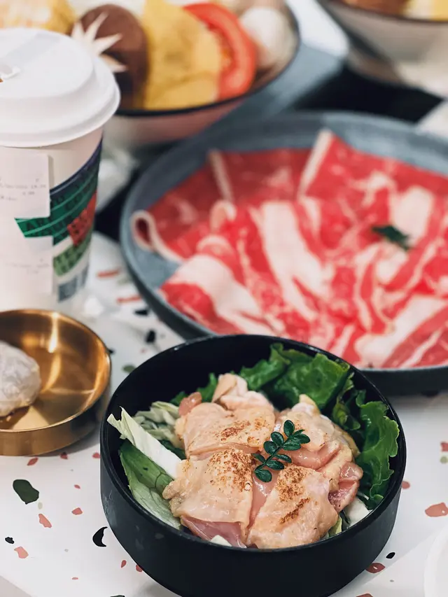 牛肉拼盤有雪花肥牛同牛板腱,選用美國特級choice,油花均勻,肉質好juicy!😋 落鍋燙幾秒,入口嫩滑又多汁,份量仲免費加多左30%,真心食到好滿足!