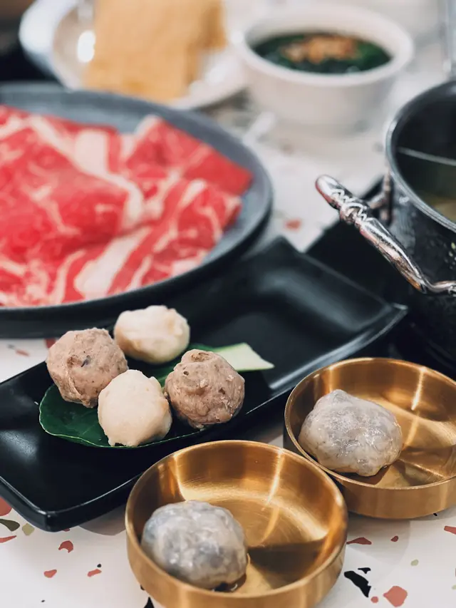 套餐送既招牌蝦滑真是一個驚喜,入面蝦肉多到誇張,食落彈牙又鮮甜,絕對係火鍋之星!😍 我仲忍吾住加左無骨雞腿肉(+$18),表面火炙過,帶點焦香,肉質嫩滑好入味;另外仲試左花枝丸拼貢丸(+$32),花枝丸咬落見到大塊花枝肉,夠爽口;貢丸就充滿濃濃香菇味,係我食過最香既貢丸!