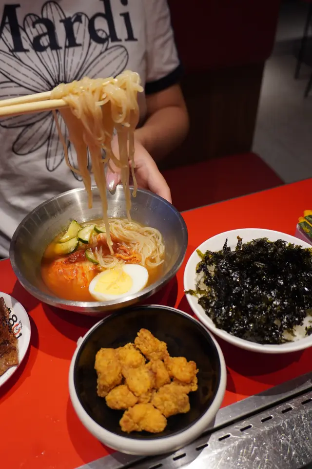 除咗燒肉,佢地嘅小食都好高分!炸物控必點唐揚炸雞軟骨,脆卜卜好正。食咁多肉點少得麻油香蒜青瓜漬物同泡菜,夠晒解膩!仲有必食嘅紫菜飯,粒粒分明好香口。最後再叫碗冷麵,酸酸甜甜,同燒肉簡直係神級配搭。