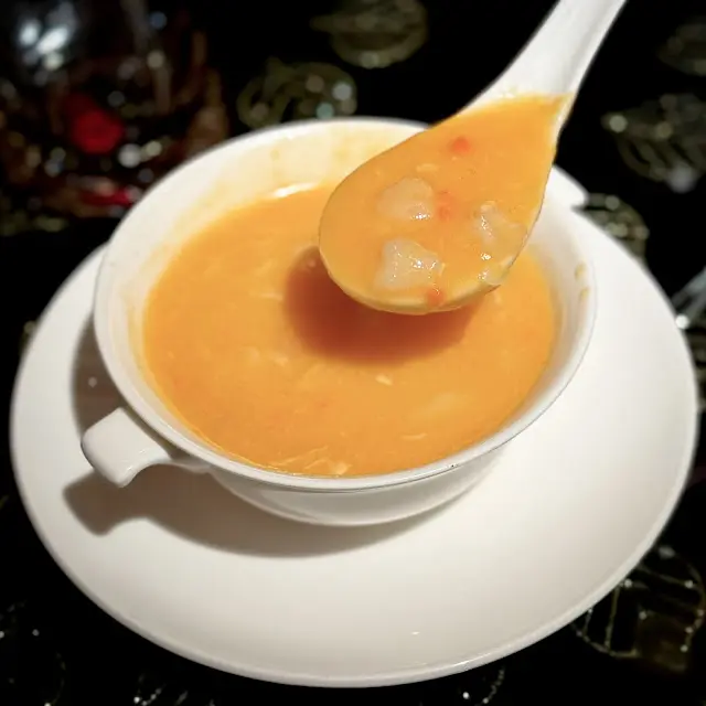 蟹皇冬茸羹熱騰騰的上檯配搭金黃湯色非常誘人,湯羹濃稠香甜內裏有滿滿蝦和蟹肉,啖啖鮮美齒頰留香。