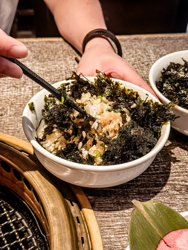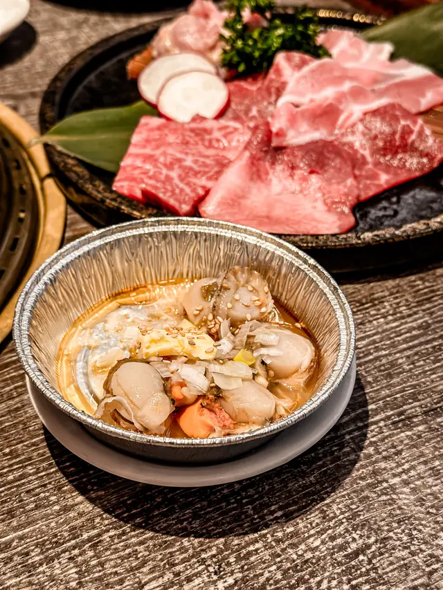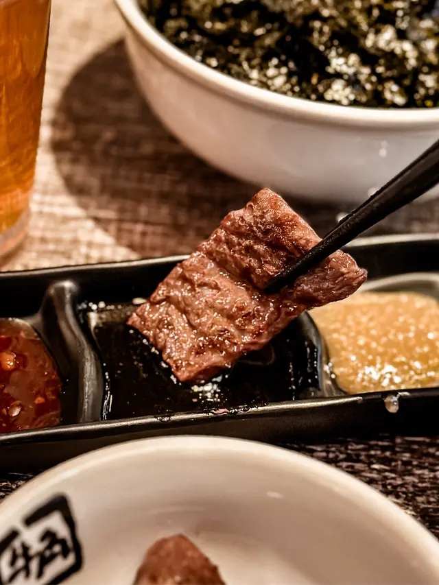 先講「定番4品燒肉定食」($228),擺盤靚到相機食先:日本雞爽肉嫩滑到識發光,豚肉燒油脂香平衡,牛頸脊雪花靚到犯規,最正係日本國產牛肩脊,輕輕燒到粉紅色入口即化,肉汁爆炸級數!一個定食已經有齊雞牛豬,選擇困難症都唔怕!