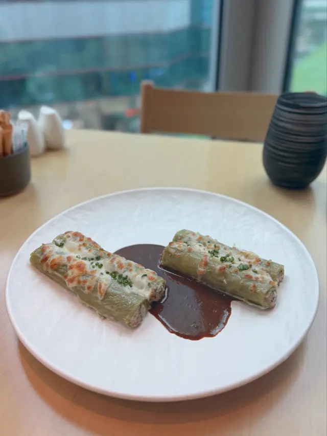 蘑菇粗管意大利麵 | Mushroom Cannelloni 有驚喜 🤩 將巴馬臣芝士同松露汁攪拌,用粗管意大利麵再包裹著,煮法有趣!入口濃郁芝士松露香,但唔會太膩。