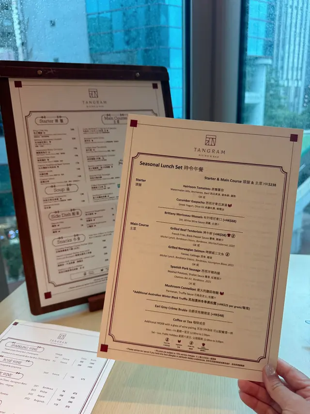 位於灣仔明怡美憬閣精選酒店內嘅法國小酒館 TANGRAM,由法國行政主廚主理,法式精緻時令午餐兩個人賣單 $286,頭盤、主菜、甜品十分精緻吸引。