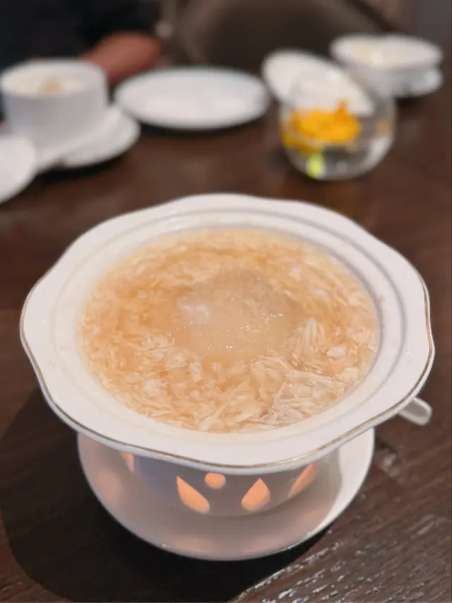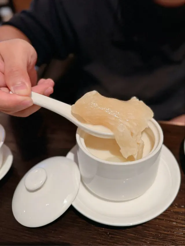 選擇兩款嘅湯品都超養顏,蟹肉燕窩羹,啖啖燕窩超足料!杏汁花膠燉菜膽,超大舊花膠!