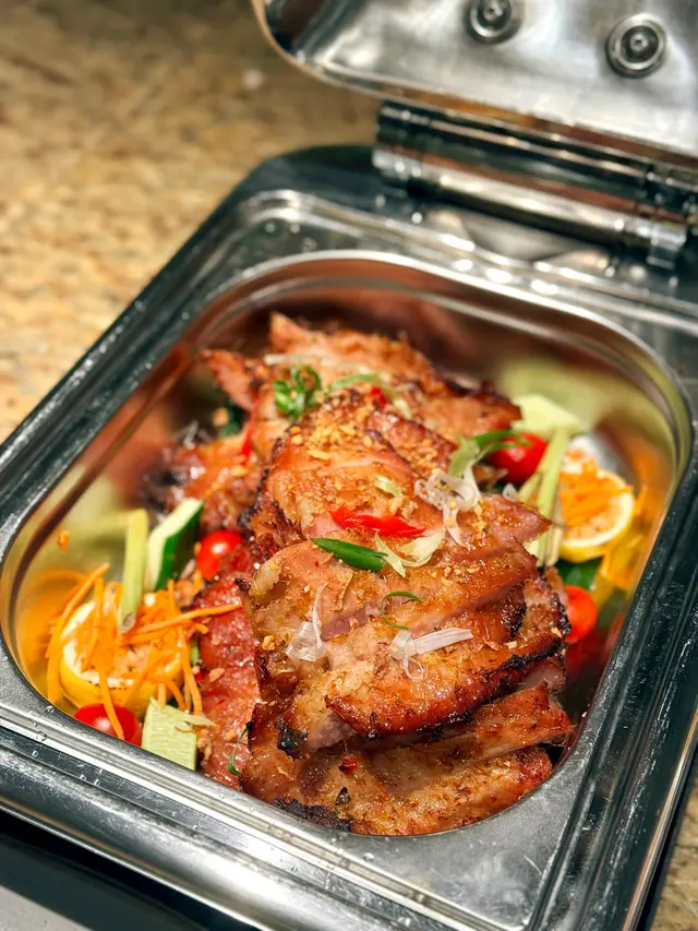 泰式料理款式都好多,十幾款任揀,屋企人好滿意😀有泰式咖喱雞、咖喱雜菜、泰式豬頸肉、泰式酸辣魚、馬來雞肉沙嗲串、泰式蠔仔餅同海南雞,個人推介豬頸肉,有少少炭燒香,食落帶肉汁幾juicy