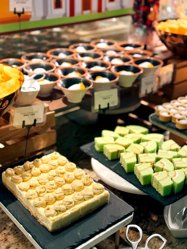 泰國菜當然唔少得泰式甜品!!有人氣極高嘅芒果糯米飯,分好一細客,糯米飯香甜軟糯。仲有必試榴槤芝士蛋糕,有榴槤果肉係面,未食已經聞到陣陣榴槤飄香。其他甜品有斑斕瑞士卷、抹茶芝士撻、咖啡撻、蜂蜜脆麻花等等都值得一試