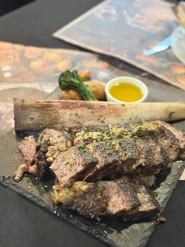 · 12小時慢煮美國原條牛肋骨:一上桌真的被嚇到!牛肋骨的長度比我手臂還要長,肉量十足,肉質軟腍入味,絕對是「食肉獸」的天堂!