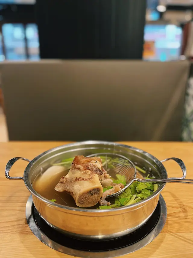 揀咗款相對冇咁油膩嘅牛骨清湯。牛骨湯熬製咗八個鐘頭以上,清清地更加能突顯牛肉嘅美味。牛骨超大件,仲有好多蘿蔔做配料,非常入味😋。