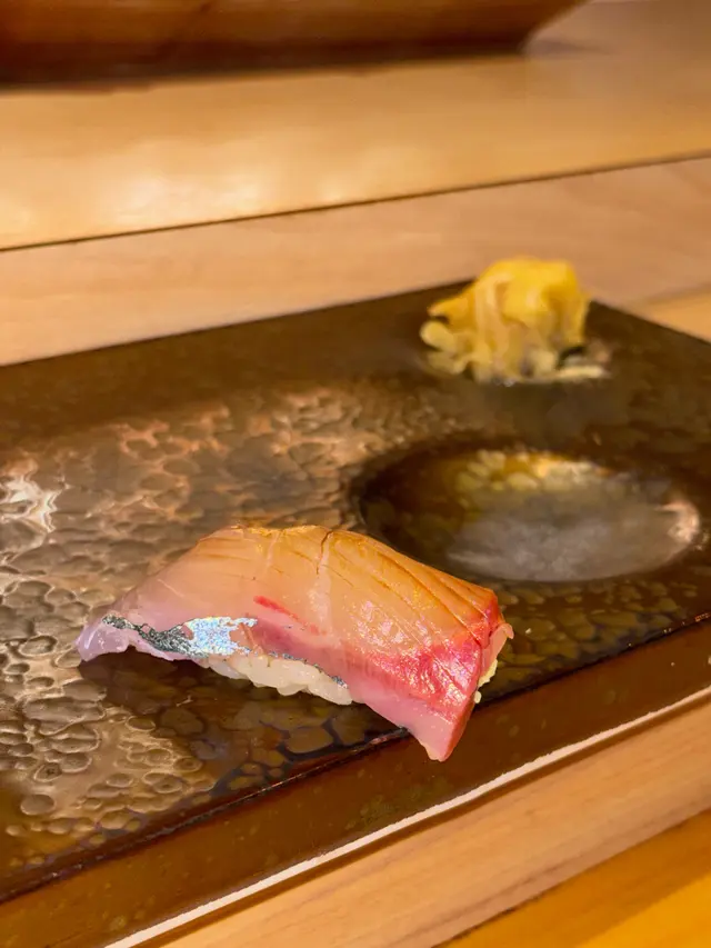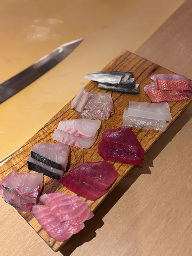 Omakase套餐精選12件手握壽司,每件即握即食,口感層次分明。大拖羅入口即化,油脂豐盈;赤身鮮嫩彈牙,帶淡淡甘甜;活北寄貝脆爽帶海水味;左口魚裙+肉滑順微焦,魚皮脆香;海膽綿密鮮甜,入口爆汁;青魚卷物Q彈多汁,配秘製醬油,青魚鮮香不腥。😋整體米飯溫熱醋香,魚料厚實,層次從滑嫩到脆爽,令人回味無窮。