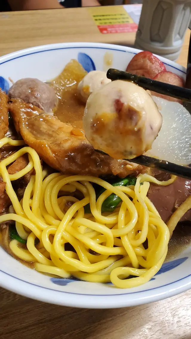 好多餸樣樣都想試嘅人就一定要點呢碗10寶麵。內有入口軟淋的牛腩、真係一咬開啲汁就會唧晒出嚟嘅瀨尿牛筋丸、醃得好入味嘅瑞士汁雞翼同翼尖、仲有坊間少見的魷魚丸,成分幾乎全是魷魚造成;還有豬紅、豬皮、蘿蔔、紅腸及時菜。牛腩汁味道適中,如果再濃味一點就更好食;油麵質地彈牙,與配料搭配得宜。