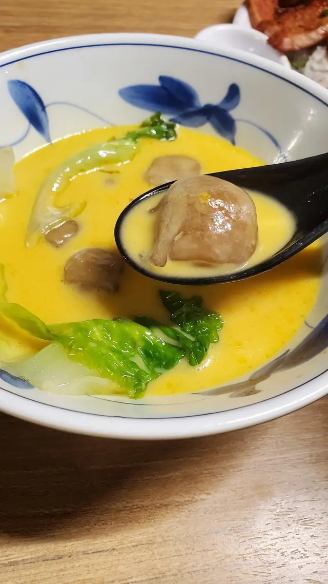 潮汕有名的小食,真係好有家鄉嘅味道。外皮以蕃薯粉搓成,軟糯煙靭,包住以五花腩及大地魚打成的肉餡,正宗食法係蒸,但呢度就以雞湯煮,一樣好食。