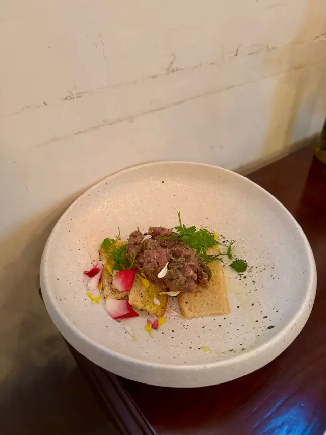 和牛他他牛味比較重配上脆餅食好夾🫶🏻單食的話就有點羶~