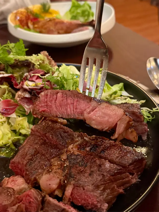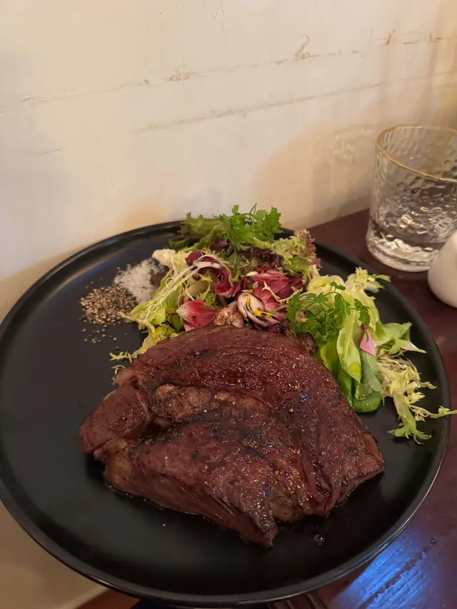 肉眼扒超大塊叫咗5成熟完全鎖咗啲肉汁🤤牛扒好嫩牛味亦偏重再加上黑胡椒和鹽食更能突出到牛肉香氣🥩另外沙律配上黑醋偏酸開胃