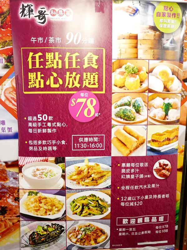 點心放題價錢十分平民化,星期一至五只需$78,便可任點任食逾50款粵式手工點心。