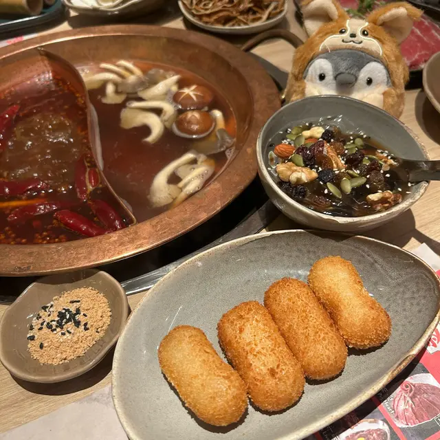 照舊㨂咗超級正嘅麻辣鴛鴦鍋😋 麻辣湯底依舊麻香滿溢,離遠已經俾佢濃郁嘅香氣吸引住🤤 食落辛香又富層次感,麻與辣比例恰到好處,勁高質👍👍 一旁嘅菇菌湯底都超級正😋 菇菌香氣清香美味😚