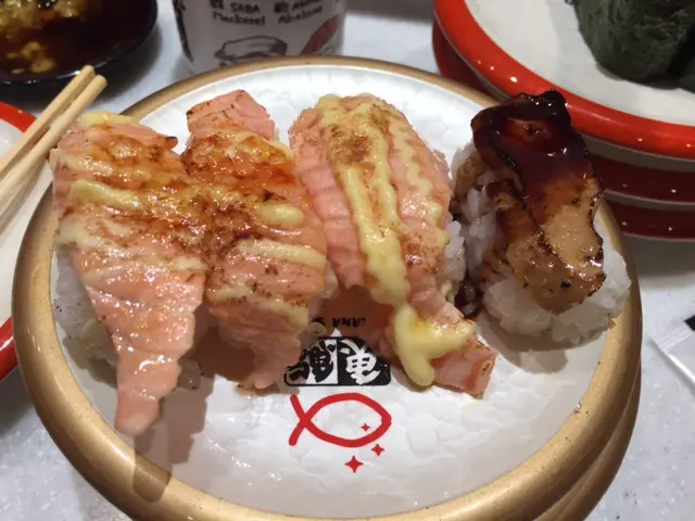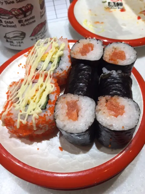 (唔知大家有冇留意,爭X有個奇怪現象,每次都見到壽司司傅做好多碟壽司擺曬喺度吹風,但都唔會放上輸送帶的)