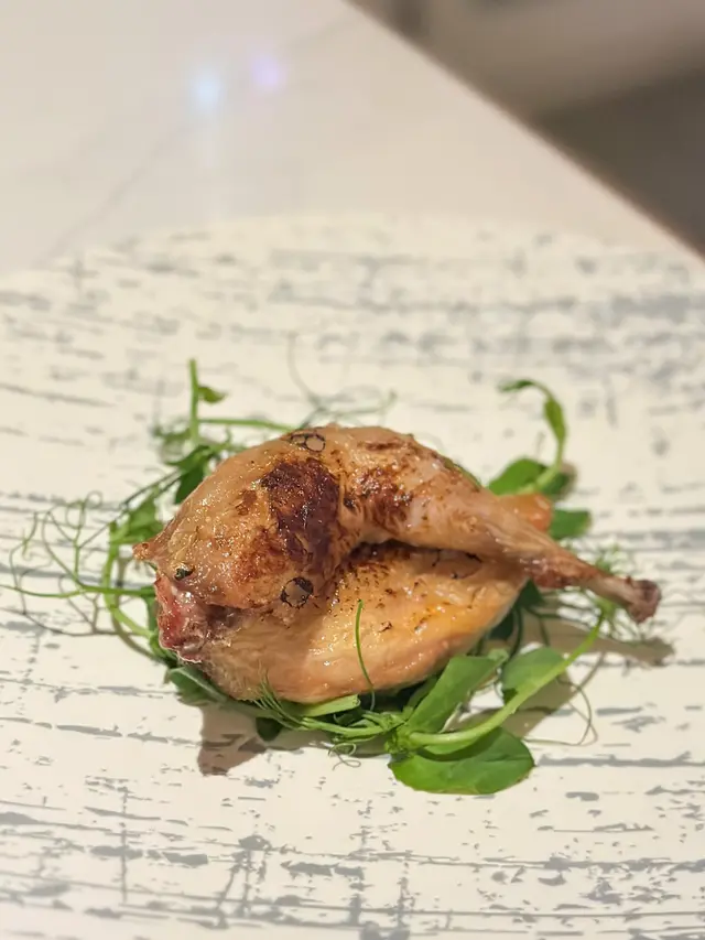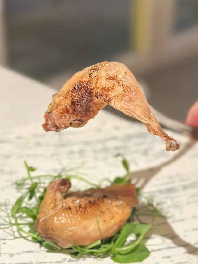 慢煮完再香煎嘅鵪鶉,肉質幼嫩,外皮係好香嘅鹽燒味!