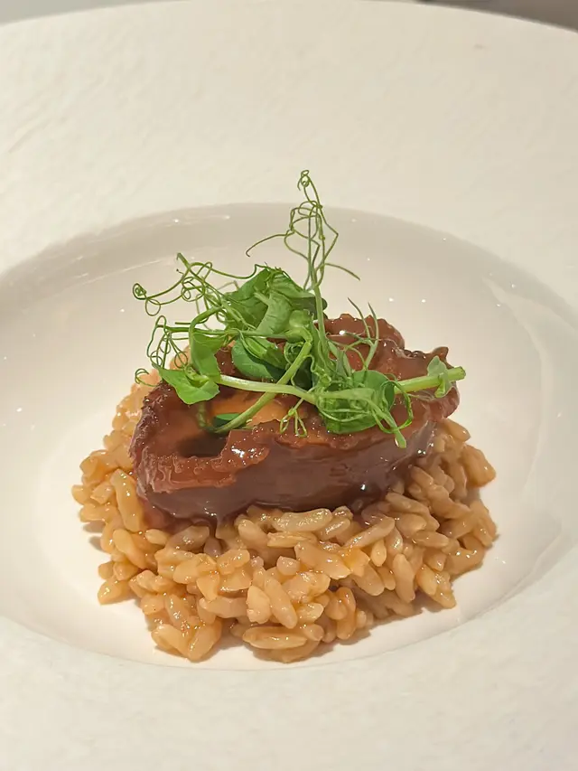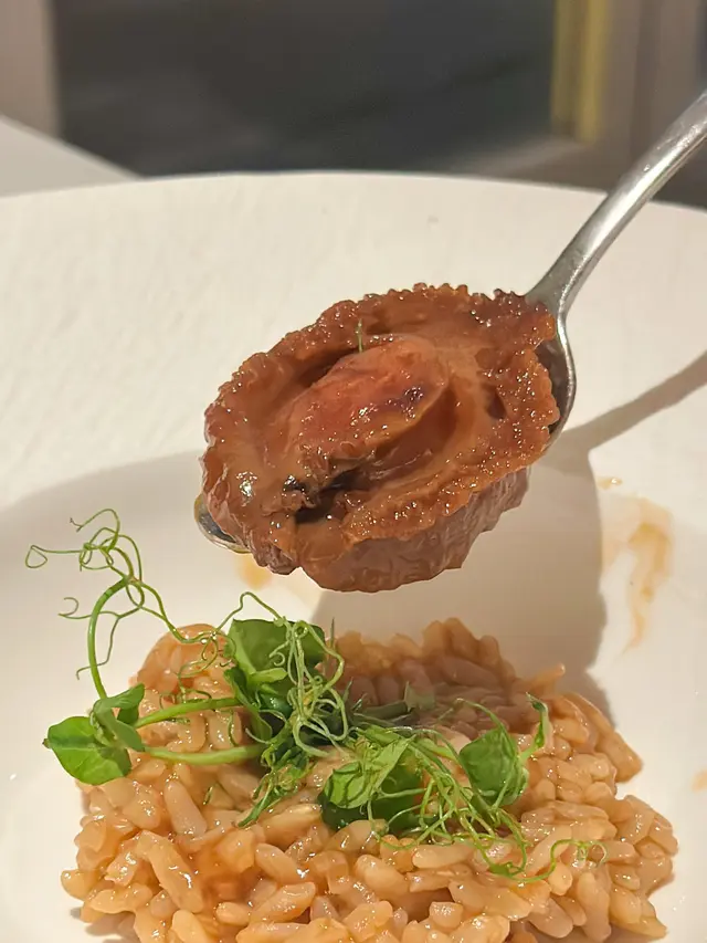 大大隻嘅鮑魚以中式嘅手法調味,鮮味香郁,而口感係軟身帶一點彈牙,Perfect!下層係以日本七星米煮嘅Risotto,索滿鮑魚嘅精華!