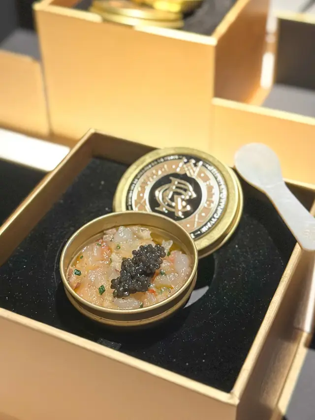 儀式感滿滿嘅前菜!採用Royal Cristal Caviar同埋西班牙紅蝦,以貝殼匙羹食用,既鮮甜又有鹹香!