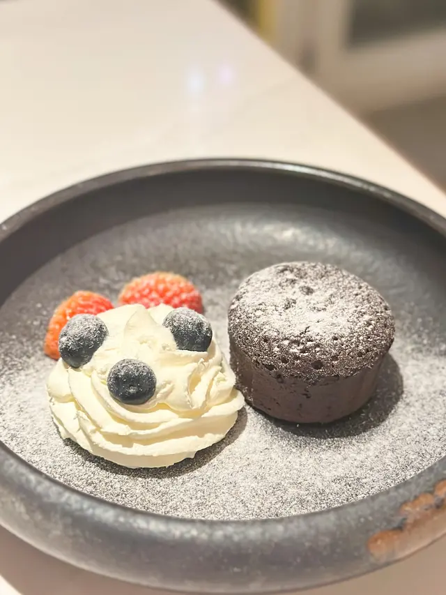 是日甜品係心太軟,外層香口,入面流心,朱古力味香郁!