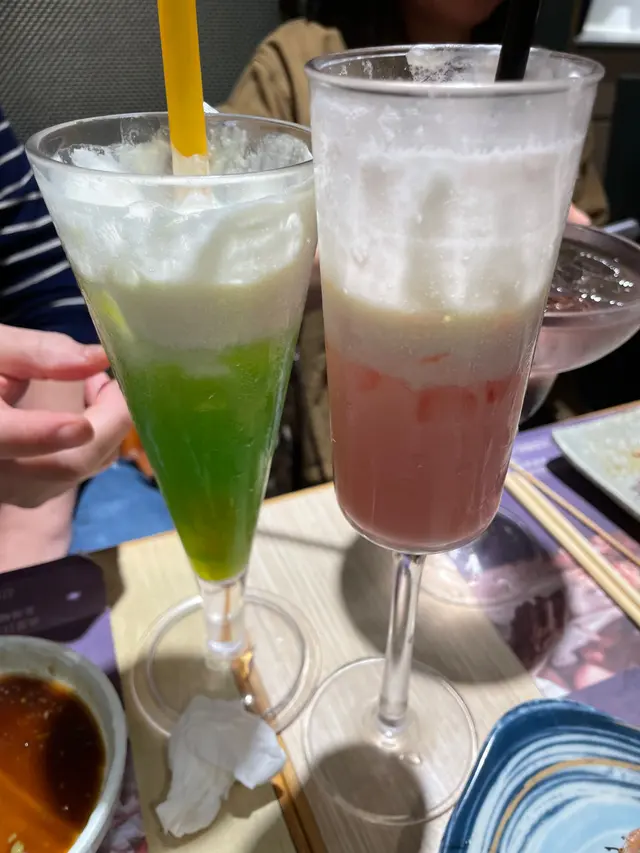 各式飲品:真係紅橙黃綠青藍紫黑白咩色既飲品都有,仲要有酒吧d高腳,短身杯黎裝,味道後話但打卡一流,加埋清酒梅酒任飲,一個字(絕)最後我又要講d蟹腳,姑勿論order 40比10,單論食味,同自助餐差不多但大小差起碼一倍,剪開無法整條取出,靠筷子刮一「住」出黎先有得入口,再者來貨夾雜蟹身,講真8份1格蟹身有咩肉食,手指尾甲都大塊果佢,相當失望