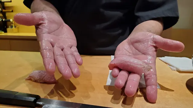 師傅話有熟成呢個需要..因為左口魚d肉本身會較un..熟成左ge話,就又可以食到個魚味..又唔會好un好難咬了