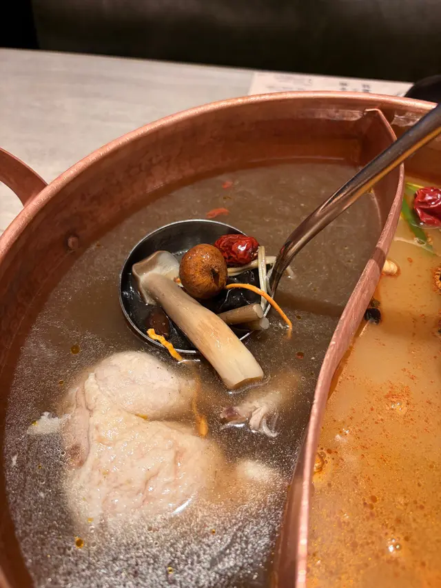 鴛鴦鍋今期期間限定有「聰明魷魚沙茶鍋」及「養生菇菌燉雞鍋」,我哋要咗鴛鴦鍋想一邊清清地要「養生菇菌燉雞鍋」,想滾之後飲咗湯先好滋潤,帶有香濃菇菌味。另一邊「牛夫人秘方麻辣鍋」小辣🌶️鍾意佢哋經典嘅麻辣口味,辣得嚟仲食到食材嘅鮮味又唔會太嗆🫶🏻
