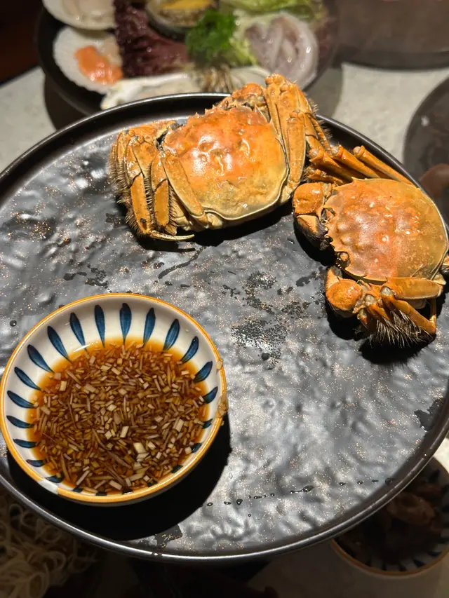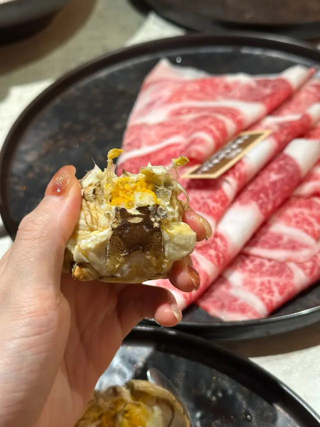 今期最驚喜莫過於呢隻蟹🦀日本黑毛和牛A4+套餐每人一隻✨打開蟹蓋橙紅蟹膏滿瀉,蟹肉嫩滑鮮甜😍配埋薑絲鎮江醋,香氣滿分💯