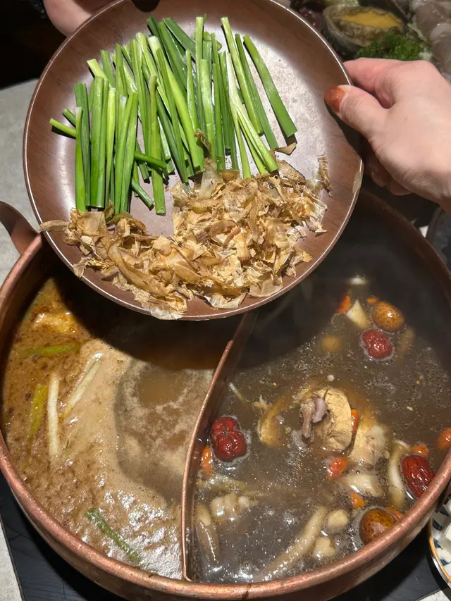 🔸聰明魷魚沙茶鍋:以香濃沙茶醬同芝麻醬為基底,佐以魷魚、蛤蜊、櫻花蝦湯底更添咸鮮美味🦑滾起後放入韭菜及木魚片,每一口都濃郁厚實,鹹中帶微辣,越滾越香😆