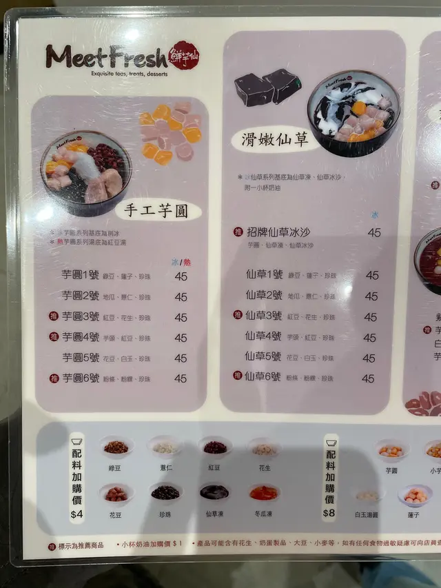 好啦睇吓有咩食先,入面有手工芋圓,仙草芋圓,仲可以額外加配甜食