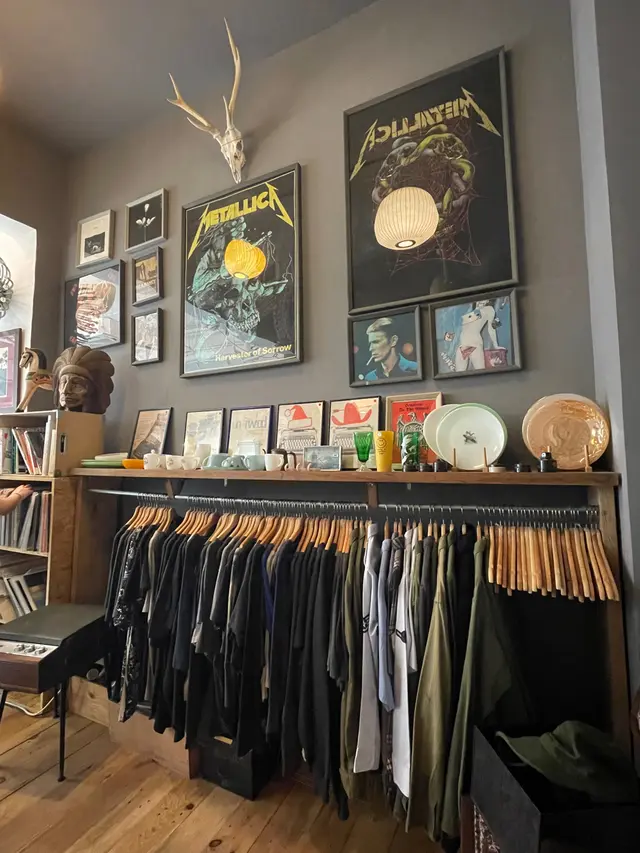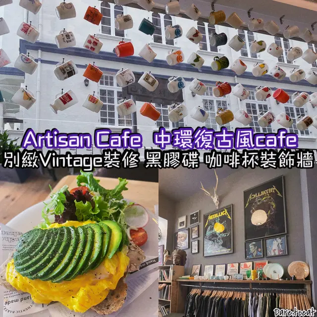 最先吸引到人一定係玻璃窗後掛上一排排嘅彩色咖啡杯,隻隻不同加埋一齊好似藝術品咁,成間cafe座位約10個左右,唔算太大,最受歡迎嘅必定係掛住咖啡杯嘅吧台, 另一旁放滿vintage 風嘅衫🧥,海報,黑膠唱片💽裝飾,洋溢復古味道