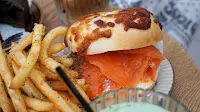貝果作正餐,煙三文魚芝士貝果配啤酒薯條 $88豐盛登場,夾餡滿滿算足料