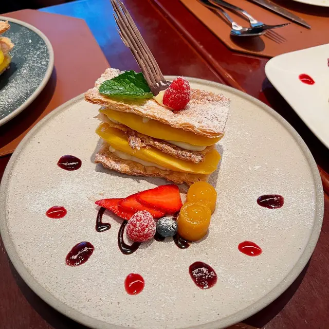 🍰 甜品:Dessert of the Day - 芒果千層酥 今日叫左signature芒果千層酥,層層酥皮夾芒果同忌廉,上面有新鮮莓果同薄荷葉,食落酥脆唔會太甜,但芒果可惜有d 酸,不過顏值爆表,影相打卡一流 📸