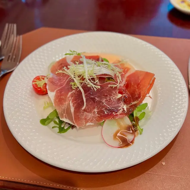 🥗 前菜:Serrano Ham Salad - 一上枱就被呢個火腿沙律吸引!Serrano 火腿片薄得透光,入口即化,配火箭菜、車厘茄同紅菜頭,淋咗少少醬汁,酸甜開胃 😋 火腿同沙律嘅配搭好清新,Lunch Set 入面可以揀呢個前菜,份量啱啱好,開胃一流!