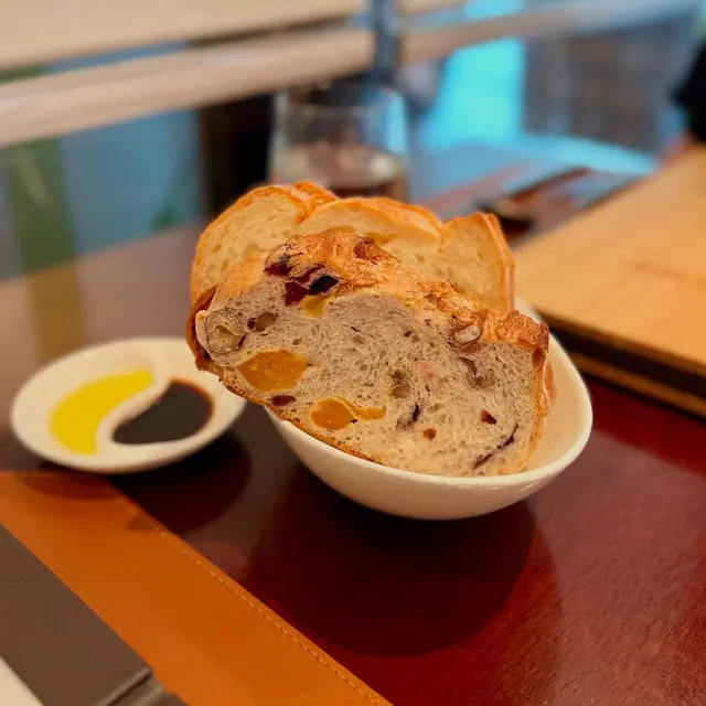 🥖 餐前麵包 餐廳送咗一籃自家製麵包,入面有橄欖同乾果,咬落好香!仲配橄欖油同 balsamic 醋,點咗食真係停唔低 🥳 呢啲細節真係好加分,Lunch Set 都有咁高質嘅麵包,超正!