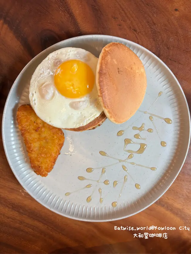豬柳強係pancake底,食落有少少似McGriddles,仲配埋薯餅,幾得意