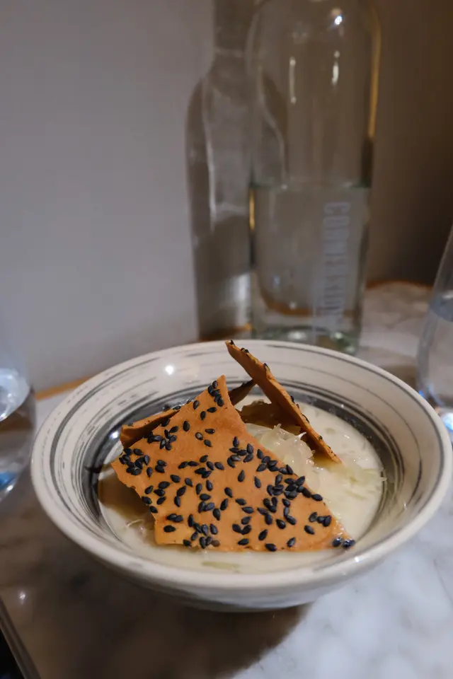 椰汁透出淡淡桂花香 加上金柚同香口嘅芝麻薄脆